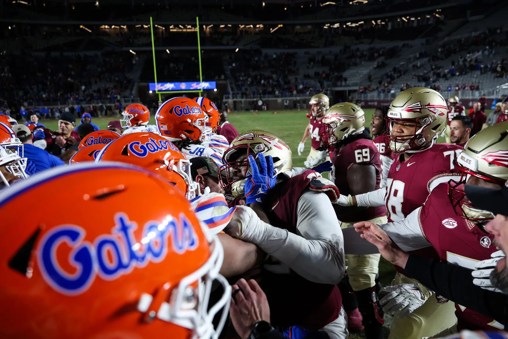 I don’t even know where to start with the Egg Bowl. Thanks to this great Twitter thread by CFB reporter Ross Dellenger, I could pick between fans storming the field and beating each other with chairs, Dave Cutcliffe pretending to throw a Mississippi State fan to his death, the infamous 2019 dog piss game, or this one where Ole Miss head coach Lane Kiffin is probably leaving for LSU on Saturday and might tank Ole Miss chances at the playoffs during their best season since pre-integration. And yet, I’ll leave you with this grainy footage of a massive brawl which led to broken jaws, helmets thrown, and throats kicked before the 1997 Egg Bowl.