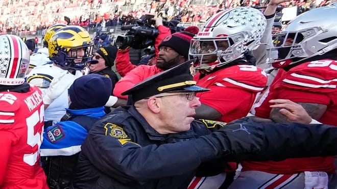 I think it’d be a cop out to simply mention the fight last year after this matchup, which led to the cops pepper-spraying players and coaches after a fight over Michigan planting their flag at midfield of The Horseshoe. Unfortunately, in the public domain of the internet, there aren’t too many stories I could find of fans fighting, but I’m sure they exist. In an effort to show the level of pettiness in this rivalry, like Ohio State marking M’s with red x’s throughout campus the week of the game, here’s a story about Peter Fletcher. He worked for the Michigan State Highway Commission and when the 1978 map was made, he included fake towns of beatosu and goblu in Ohio. He sent copies of these maps to Woody Hayes. “There’s nothing inaccurate in putting a message of great national import on the map,” Fletcher said.